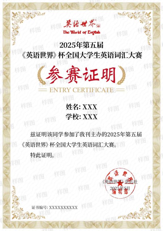 2025年第五届《英语世界》杯全国大学生英语词汇大赛开启报名
